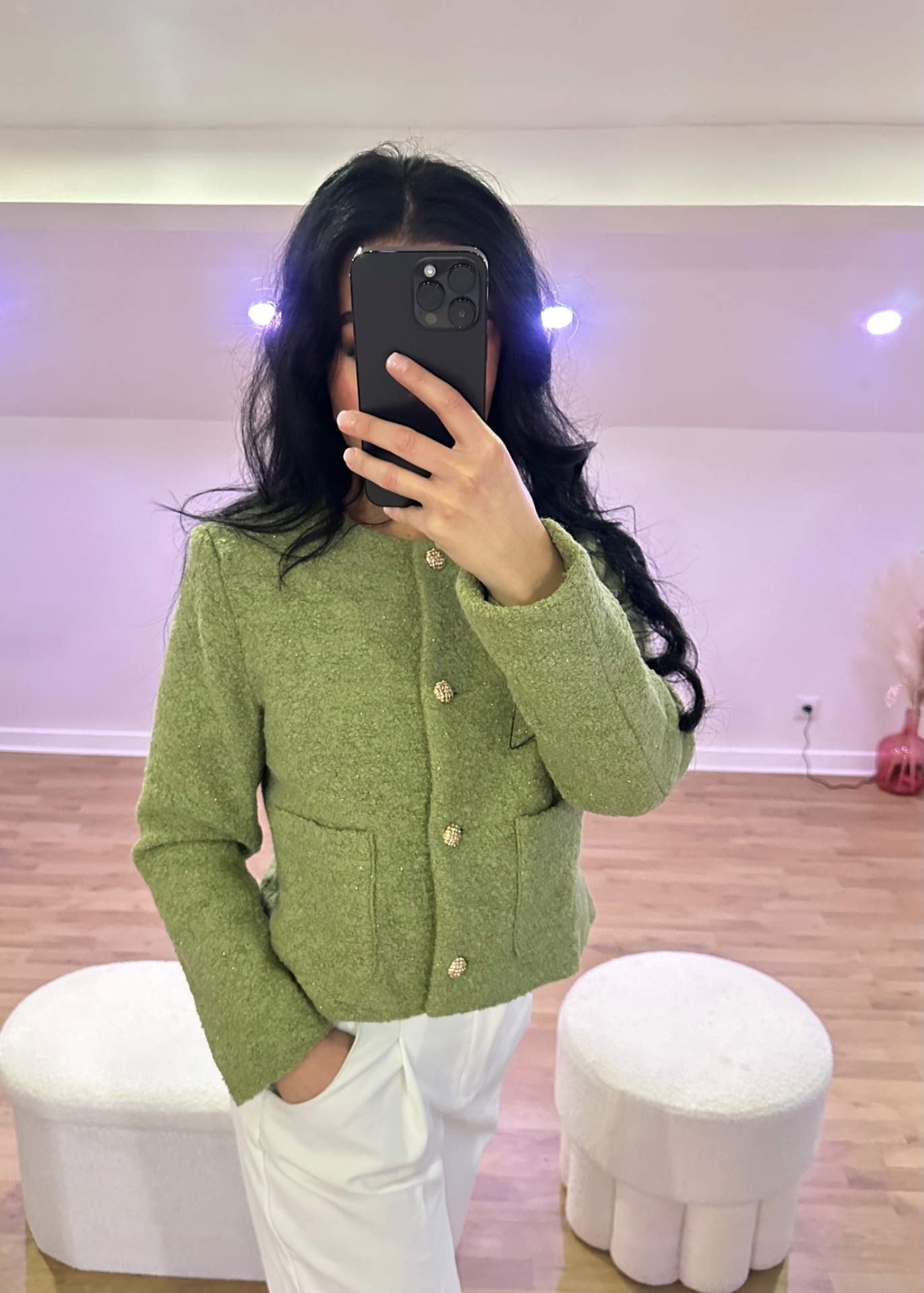 Cette veste au style « Old Money » est une pièce forte qui mixe look classique et modernité grâce à sa couleur pétillante et à ses boutons dorés qui accessoirisent la tenue.