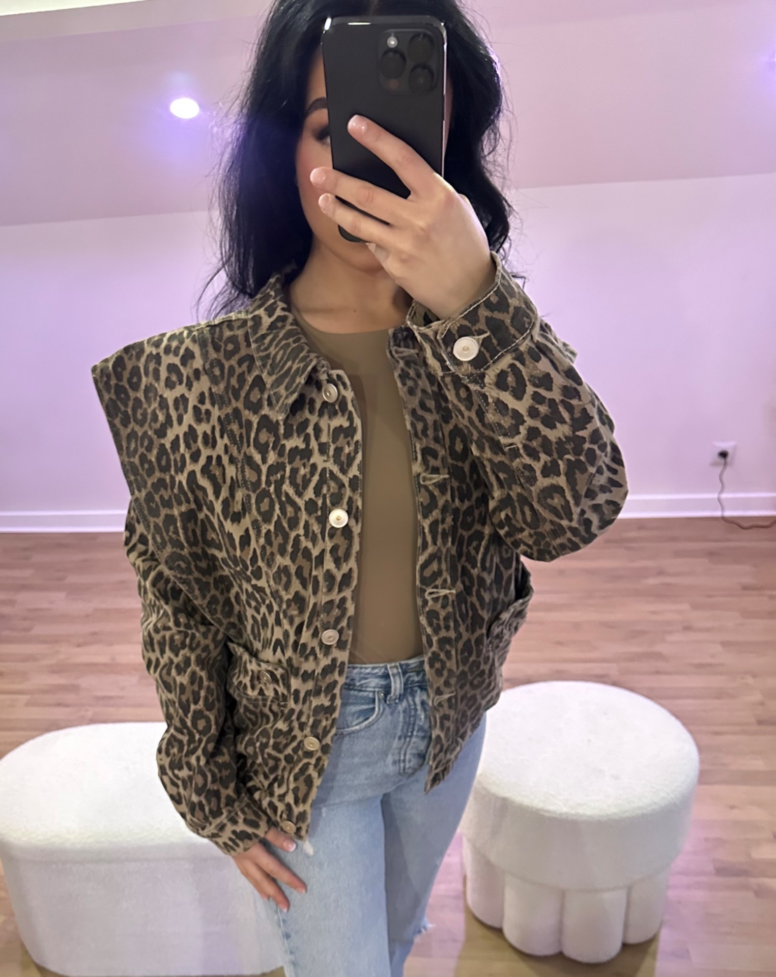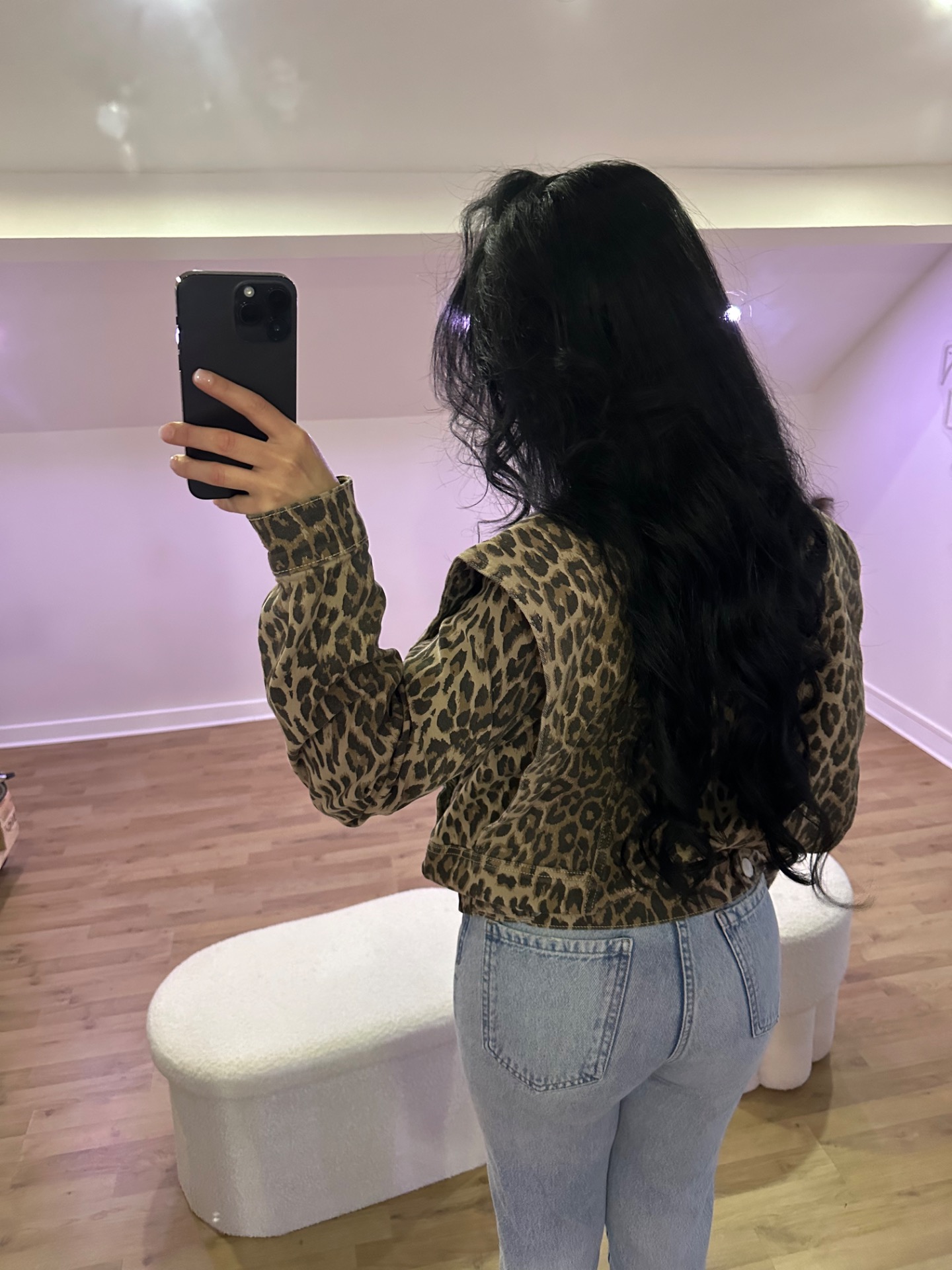 Osez l'imprimé léopard, l'indétrônable de la saison ! Cette veste courte structure votre silhouette grâce à ses empiècements aux épaules. Une veste de caractère pour transformer une tenue basique en un look affirmé.